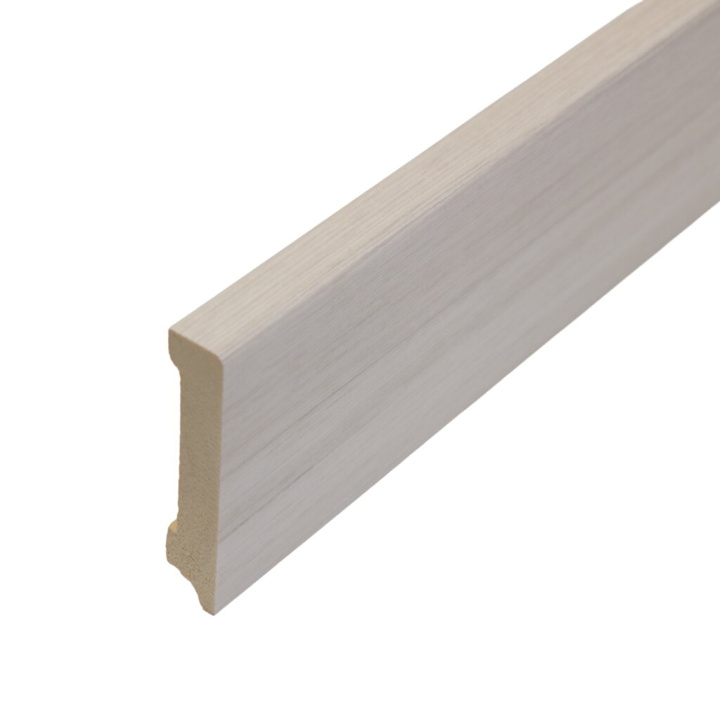 Массив сосны в износостойкой ламинации высокого давления. Свойства: Природная концентрация фитонцидов в основе подавляет развитие патогенной микрофлоры за плинтусом. Монтаж: Применение контактных адгезивов позволяет выполнять быстрый монтаж на больших площадях без использования распорок. Эксплуатация: Профиль демонстрирует высокую сопротивляемость статическому давлению, не деформируясь от плотного примыкания тяжелых мебельных корпусов или ножек шкафов.